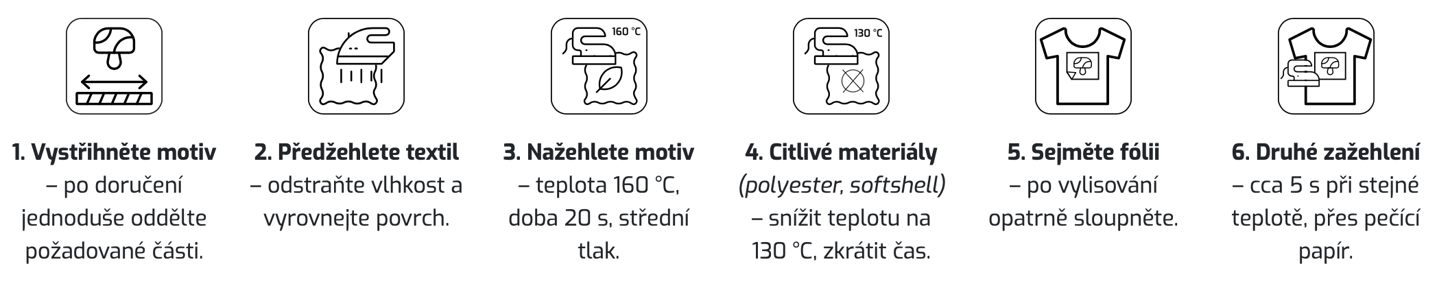 - Transfery jsou standardně dokončeny práškovým lepidlem, které jim dodává vysokou pružnost a odolnost. Výsledkem je přenos, který perfektně drží i po mnoha praních.