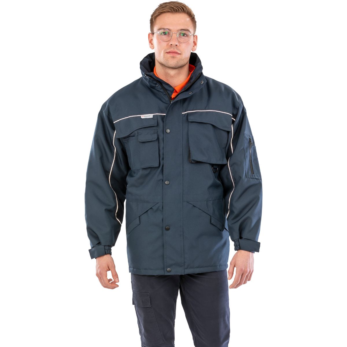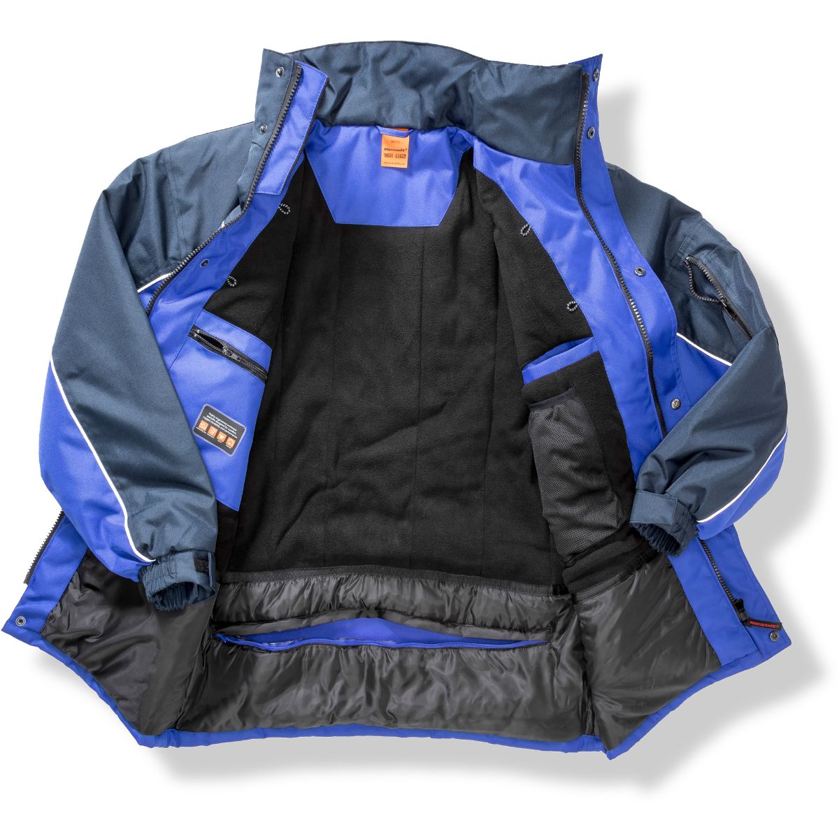 Voděodpudivý, elastické průramky, 2 hluboké kapsy vpředu, 2 náprsní kapsy s držákem na pero, kapsa na rukávu, 2 vnitřní kapsy, švy zesílené dalším klikatým švem na kapsách a obzvlášť namáhaných místech, stahovací šňůrka v pase, přístup k zušlechtění na zádech a levém prsu, 2 „D“-kroužky, materiál odolný proti větru, pratelné na 30°, nelze žehlit, nelze sušit v sušičce