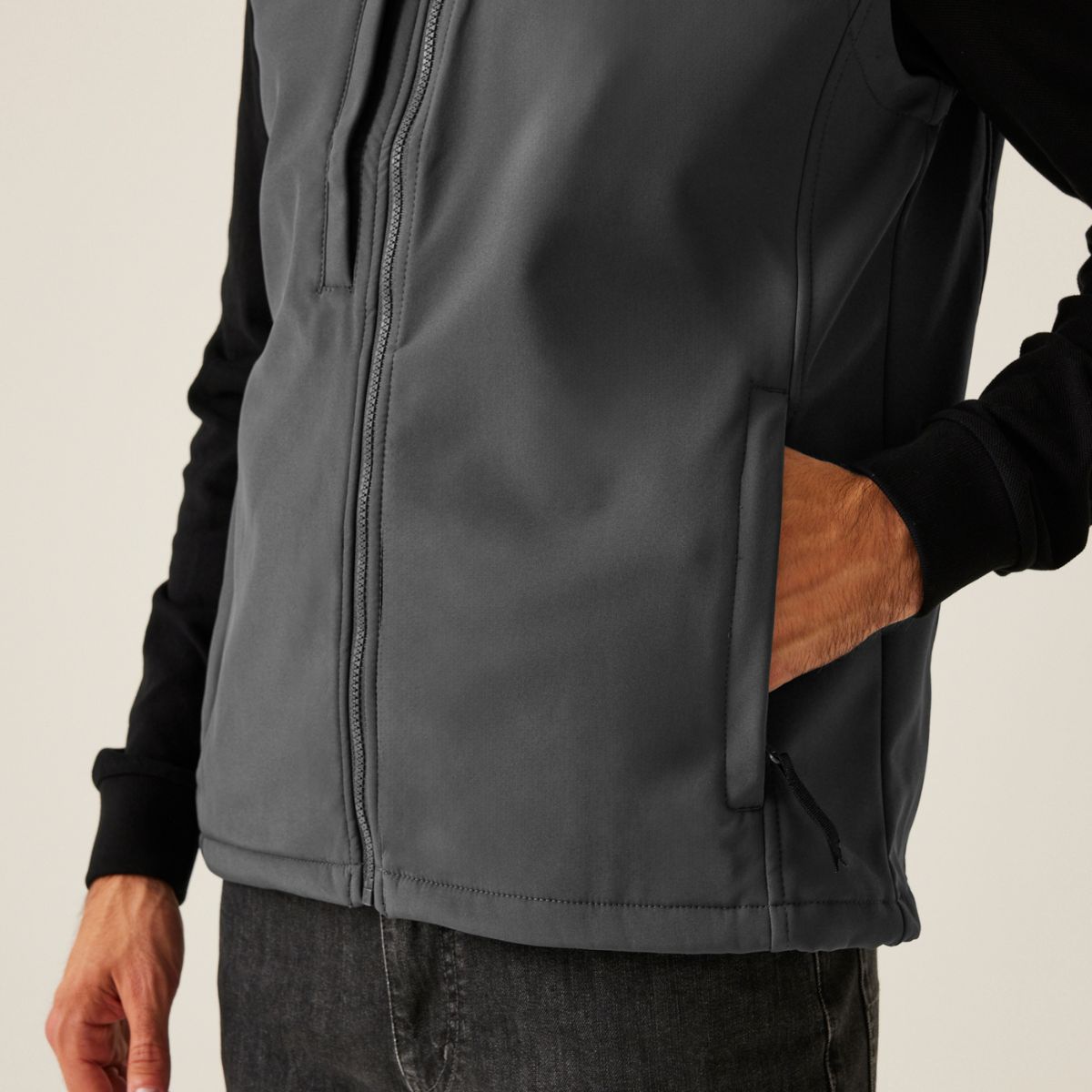 270g/m², 96% polyester, obsahuje minimálně 50% recyklovaného polyesteru (rPet), 4% elastan, bez PFC, uvnitř: fleece