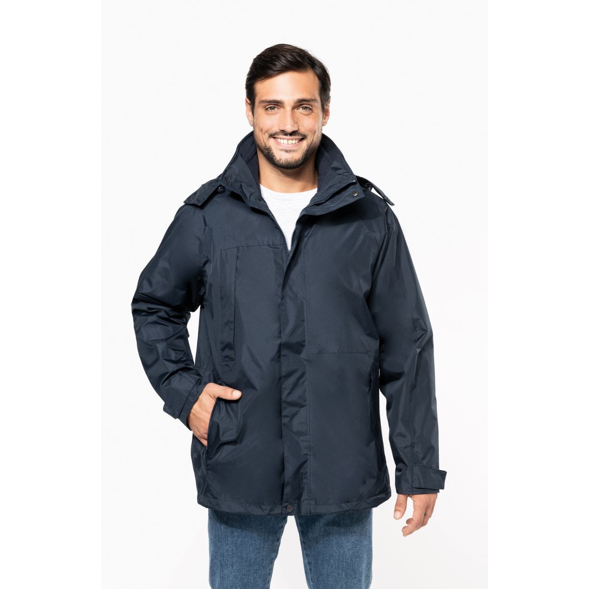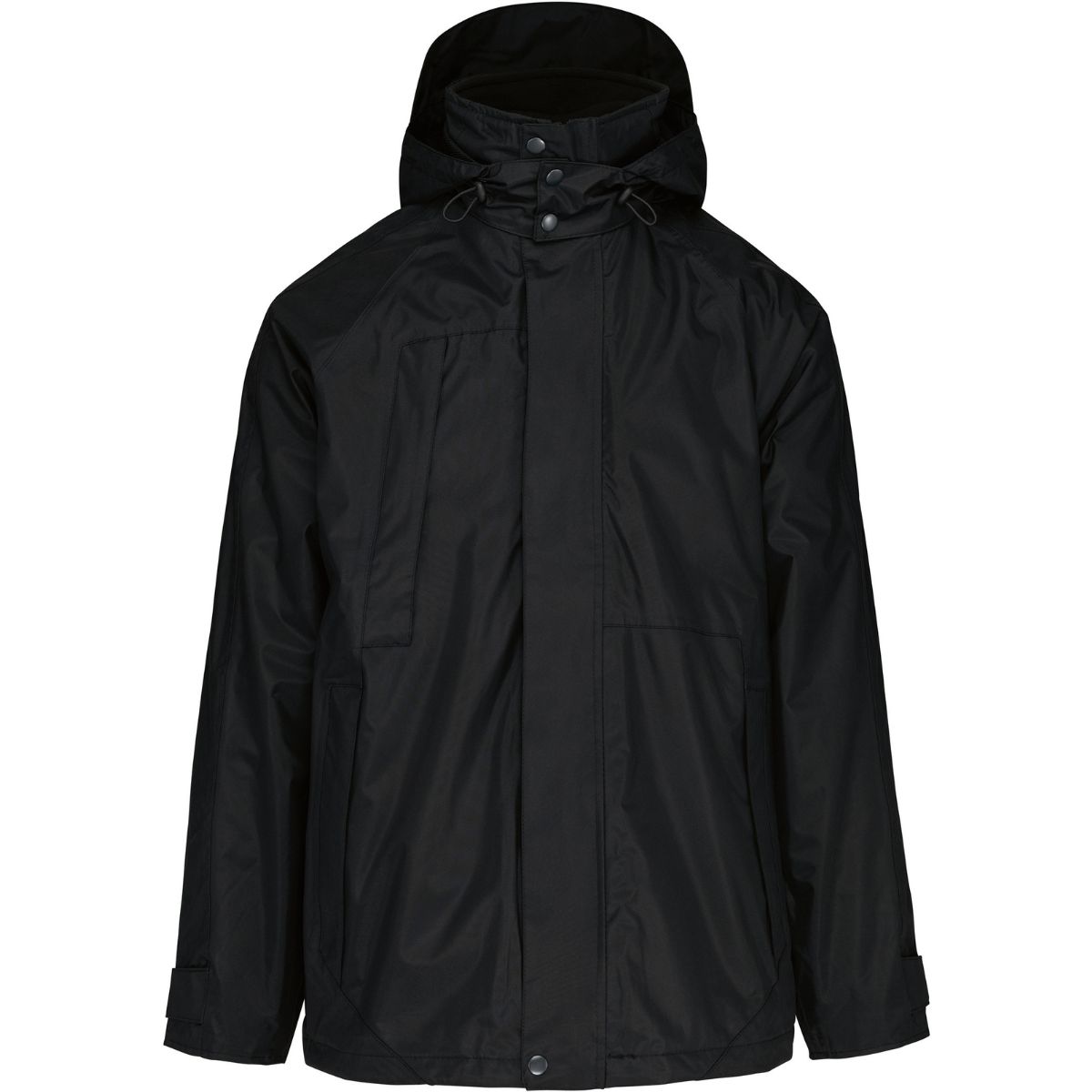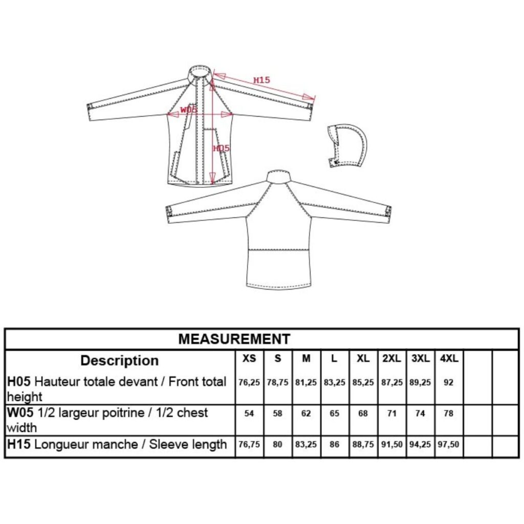 Voděodolné, odnímatelná kapuce, manžety na rukávech se suchým zipem, zip s klopou proti větru, lepené švy, vnitřní bunda z polyesterového mikrofleecu, přístup k zušlechtění, pratelné na 40°, nelze sušit v sušičce, nelze chemicky čistit