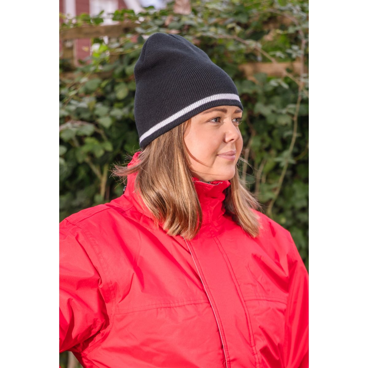 Pletená čepice s kontrastními pruhy