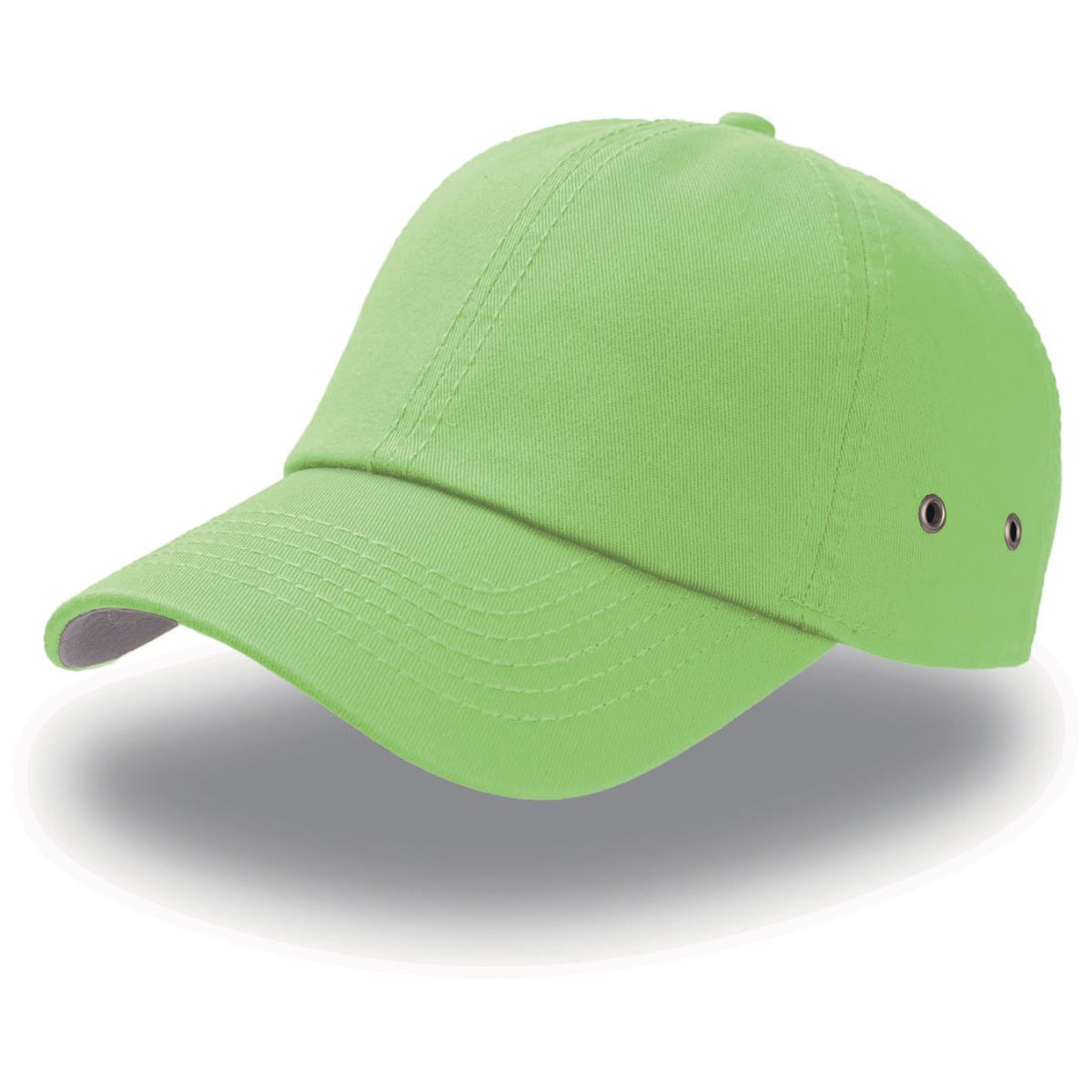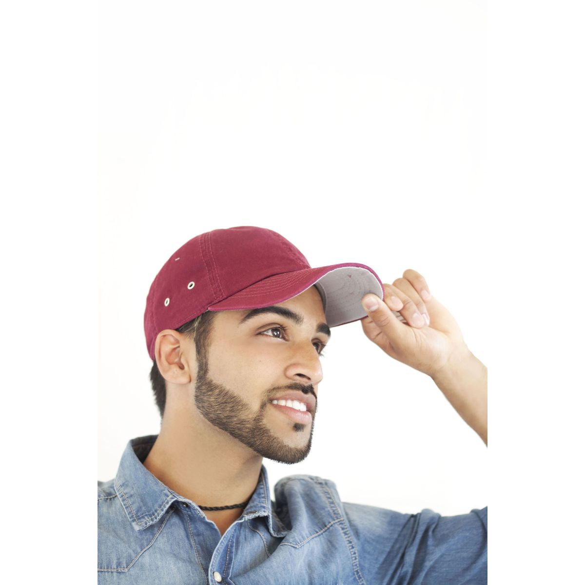 Obnovený udržitelný model Action-S (artikl: 33.0264), spodní strana kšiltu v kontrastní barvě, nevyztužená přední část, boční větrací otvory s kovovými očky, látkový pásek s kovovým zapínáním, štítek TearAway, ruční praní, nelze žehlit, nelze sušit v sušičce, nelze chemicky čistit