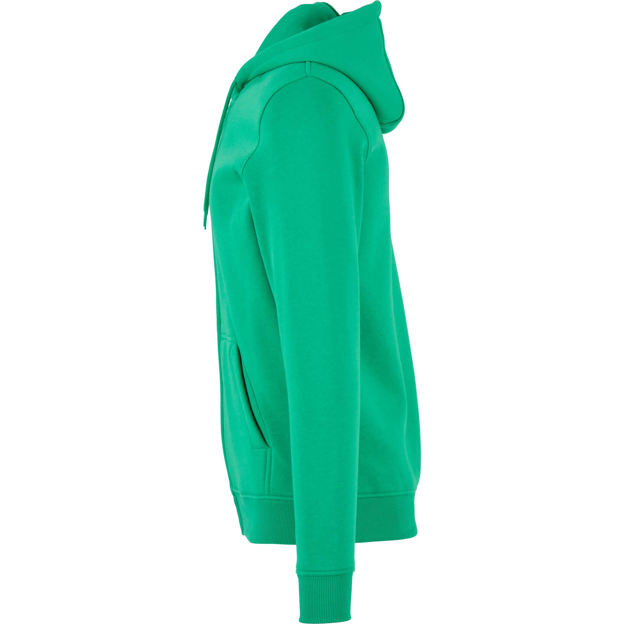Delší střih, podšitá kapuce s dělícími švy a šňůrkou, půlměsícová podsádka na krku, krční lemovka, široké žebrované manžety na rukávech a lemu, skrytý zip, klokaní kapsa, uvnitř počesaná, neutrální velikostní štítek, pratelné na 30°