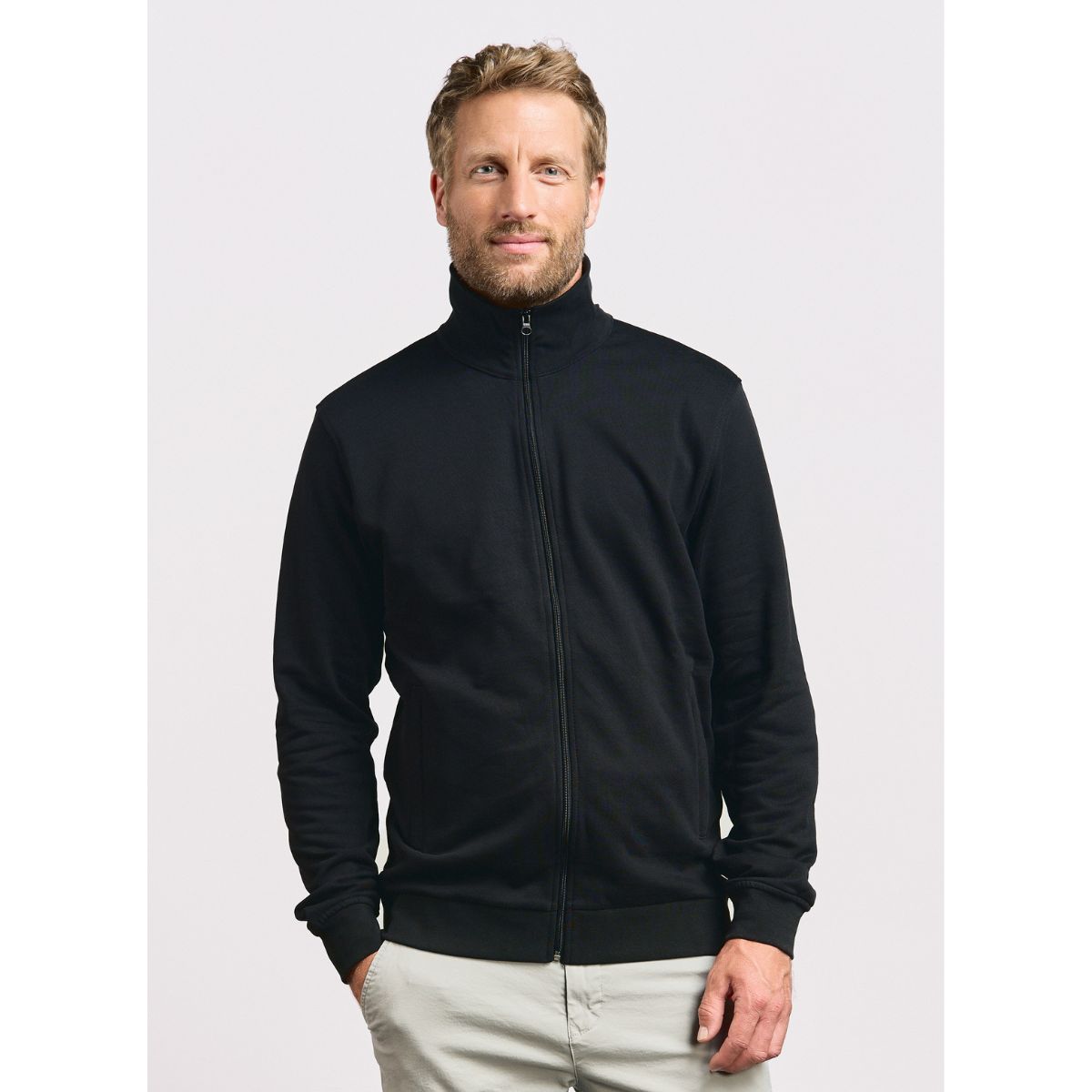 Stojáček, manžety a lem s elastanem, celopropínací zip, 2 boční kapsy se zipem, uvnitř počesaná, pratelné na 60°, lze sušit v sušičce při nízké teplotě