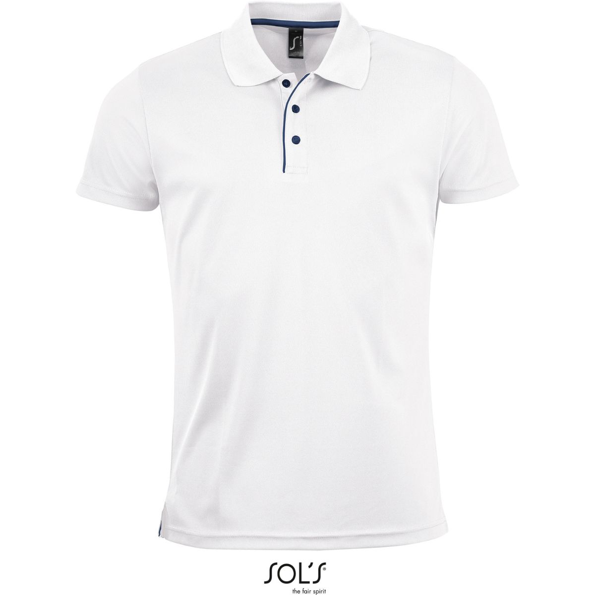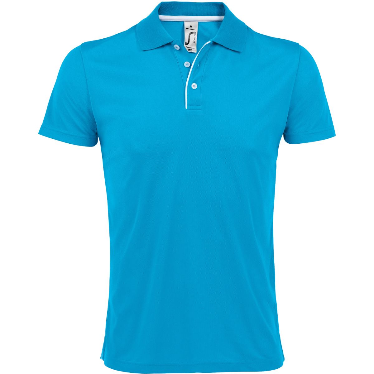 Léga se 3 knoflíky s lemováním v kontrastní barvě, krční lemovka, boční rozparky v kontrastní barvě, vhodné pro sublimační tisk, absorbující pot, rychleschnoucí, pratelné na 60°, nelze sušit v sušičce