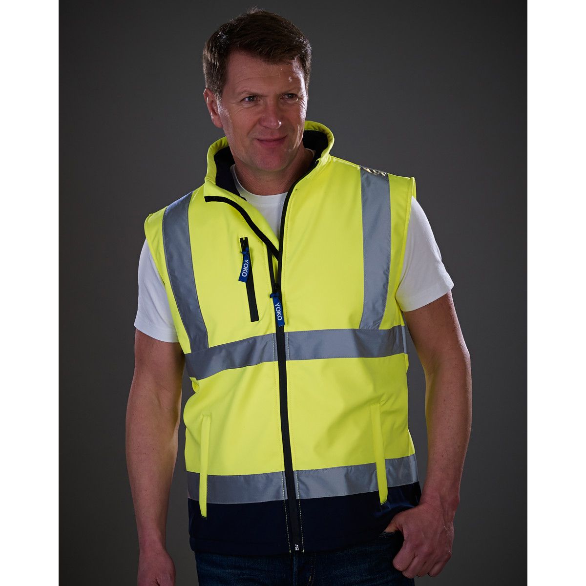 Vodotěsné zipy, voděodpudivý, boční kapsy na zahřívání rukou, náprsní kapsa, certifikováno podle EN ISO 20471 třída 2, garantované reflexní vlastnosti podle EN – normy pro 25 praní, 1 reflexní pruh přes každé rameno, dva reflexní pruhy široké 5 cm kolem těla, pratelné na 40°