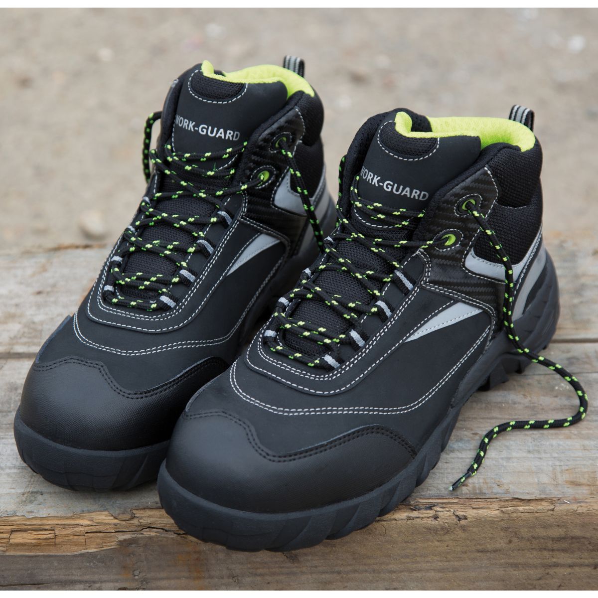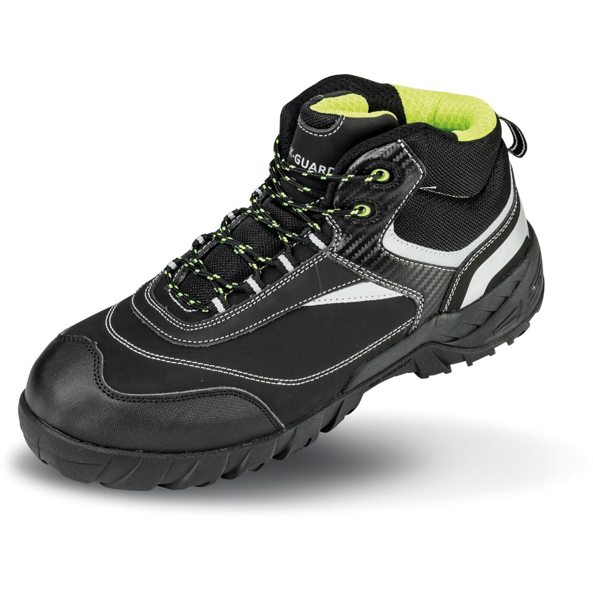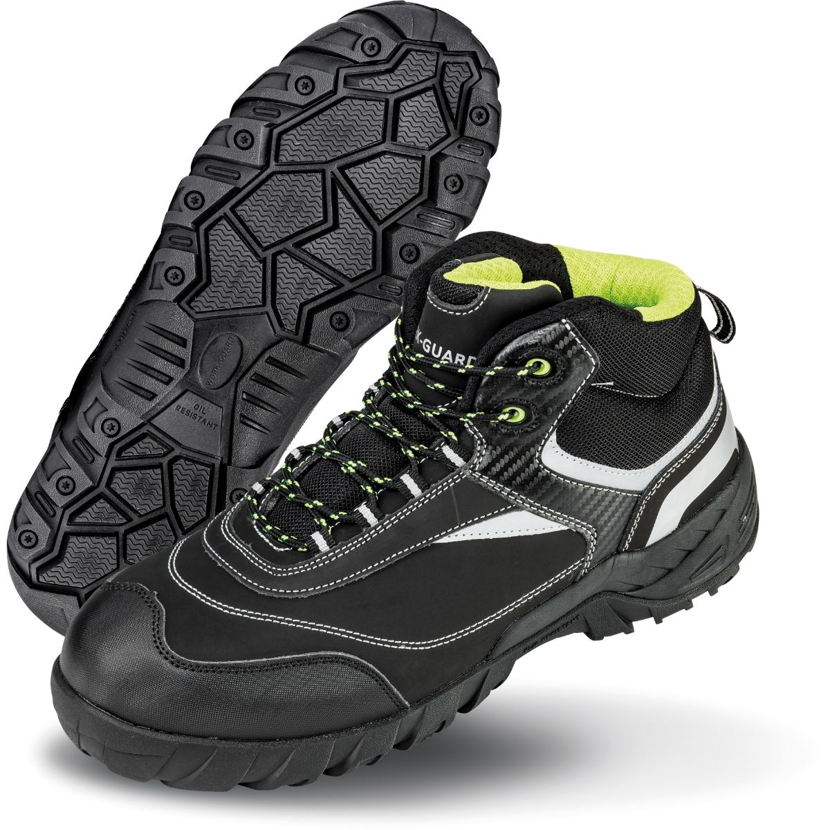 Voděodpudivý, prodyšný materiál, polstrovaný a vyztužený svršek a jazyk, odpružení v oblasti paty, neklouzavé, zatahovací smyčka, ochranná špička, antistatické, odolné vůči oleji, certifikováno podle EN ISO 20345:2022 S3L FO SR, reflexní detaily (bez ochranné funkce), nelze chemicky čistit