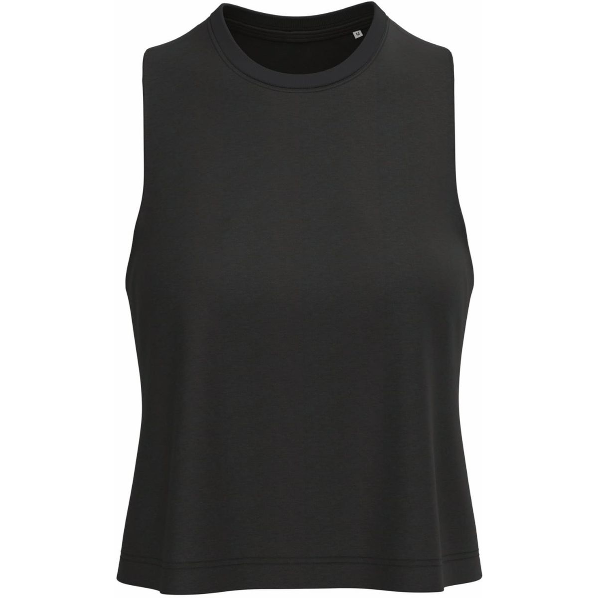 Krátký střih, klasický střih, kulatý výstřih v 1×1 žebrovaném úpletu, krční lemovka tón v tónu, široké průramky, dvojité švy na lemu, protižmolkovací předúprava, lehký a příjemný komfort při nošení, certifikovaná veganská výroba bez živočišných přísad, neutrální velikostní štítek, pratelné na 40°